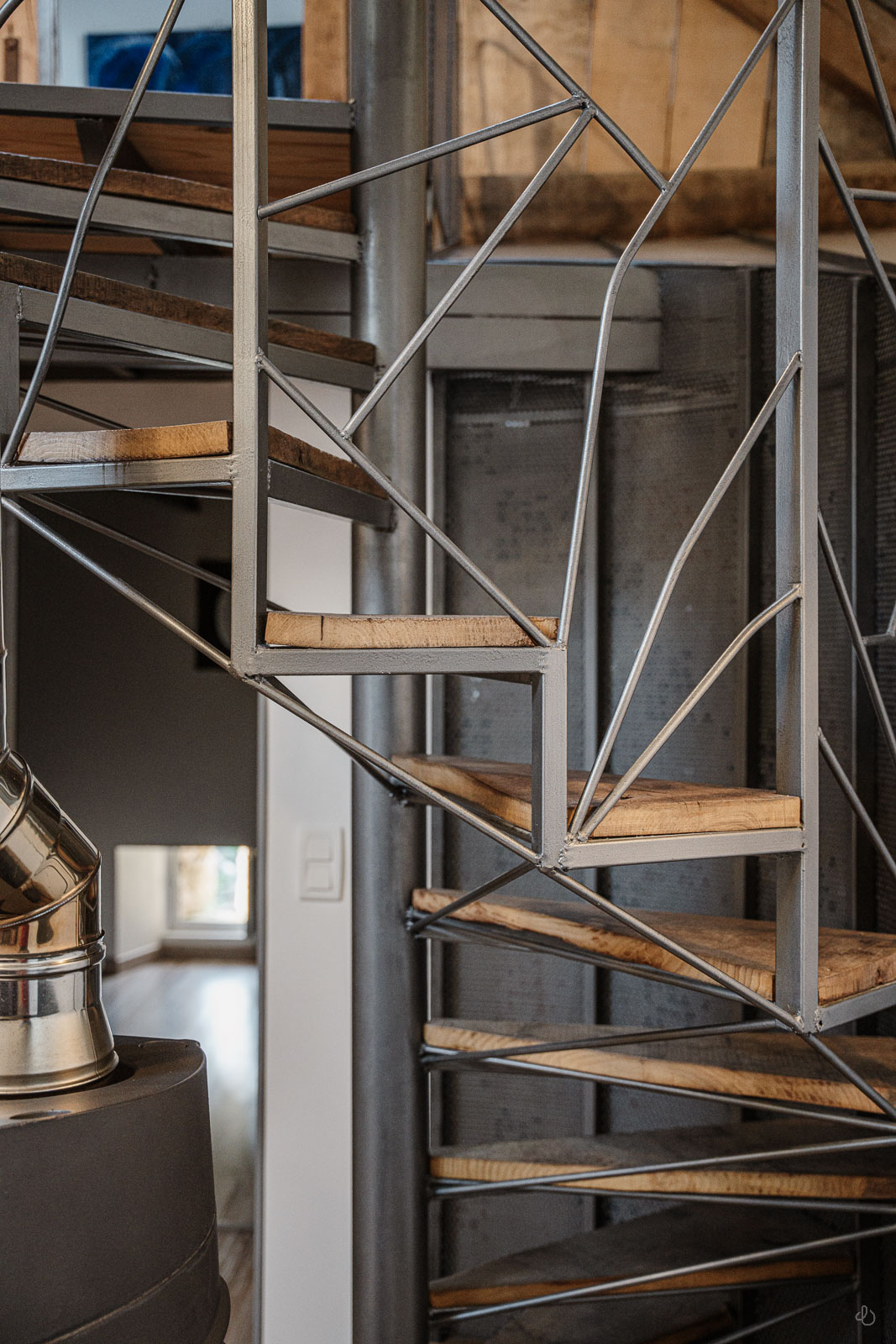 - au premier niveau : une chambre (avec le grand lit), une kitchenette, un espace repas, un coin salon, la salle de bain, les toilettes séparés.